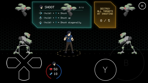 3、依照屏幕给出的提示(例如 +Y=Shoot ),操控角色进行射击,把所有目标都摧毁,如此便完成教程啦!