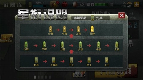 在游戏里,军衔总共划分为十五个等级,由低到高依次是列兵直至元帅。玩家可通过完成主线任务来获取经验,进而提升自身的军衔等级。