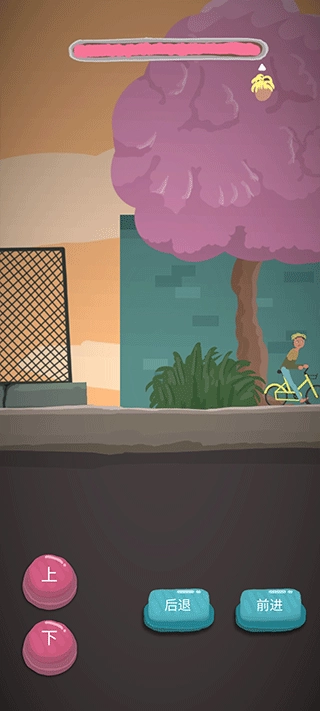 1、第一步,打开“为爱冲锋”。它的玩法十分简单,采用关卡制。就像第一关,玩家会骑着一辆自行车展开冒险。