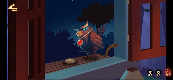 当我们拥有“小碗”与“虫子”后,就能够把窗户打开,把“小碗”放置在窗台上,接着把“虫子”放进“小碗”里。这时,乌鸦会被自动吸引过来,我们就能趁此机会拿到乌鸦脖子上的“红宝石”。