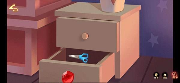 3、把红宝石放置在床头柜底层的凹槽之中,拉开抽屉后就能得到“剪刀”。