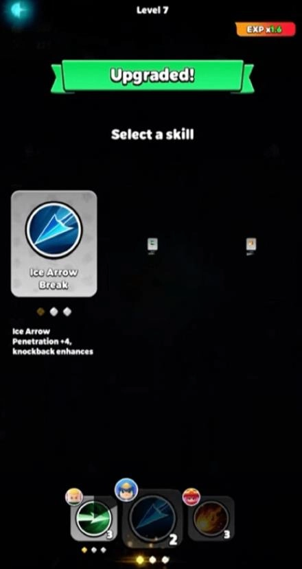 2、通过击杀怪物能够获取经验值,每当积累的经验值足够升一级时,便可以抽取一次技能的升级选项,并且是经典的三选一模式。