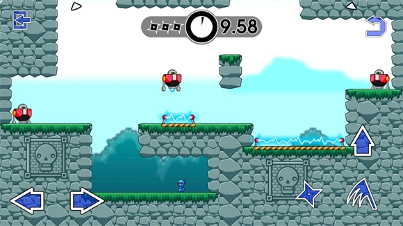 原地向上起跳,利用手中的手里剑破坏掉最后一个机器人。