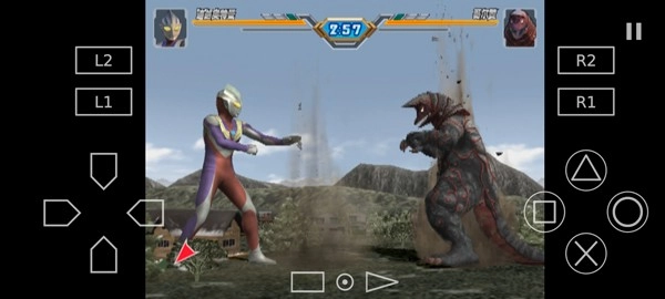 5、进入游戏后画面如图所示,玩家需要操控奥特曼与怪兽展开对战。