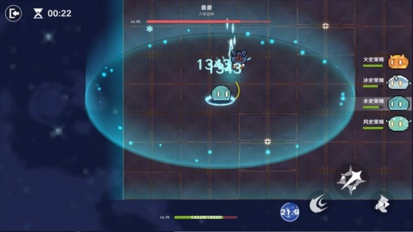 2、一进入游戏,我们就化身为萌团子史莱姆,还能瞧见有各类技能可供释放。