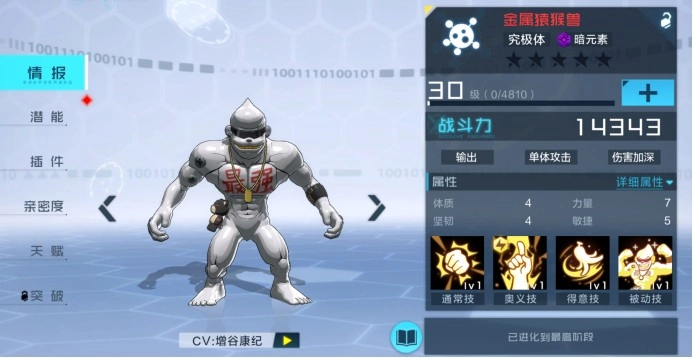 2. 这是一只面对处于异常状态的对手时,能够加深伤害,呈现出越战越强特性的强力数码兽。虽然爆发能力很关键,但金属猿猴兽厚积薄发的机制,在后期整体练度提升后,能展现出更为显著的优势。