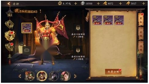 4、鬼神洗炼: 鬼神装备可以通过消耗 鬼神洗炼石 进行洗炼,洗炼后会为装备增加额外的属性。最多可以洗炼五条属性,且洗炼总评分达到一定分数时,洗炼属性会有额外加成,进一步增强鬼神的战力。