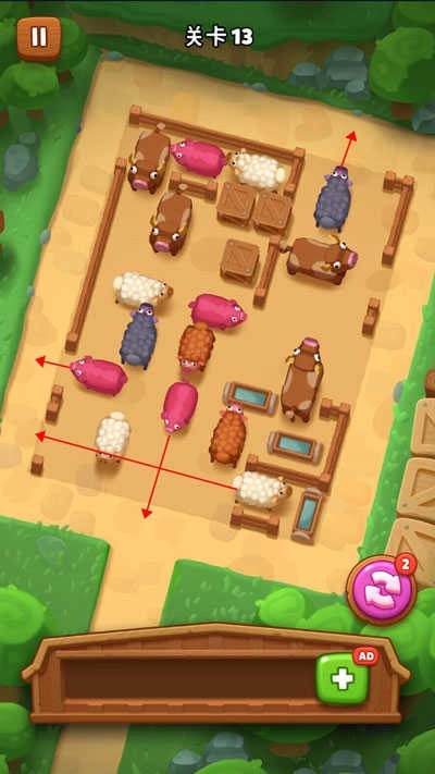 1、当进入游戏后,你得把栅栏里的动物赶出来,让它们两两匹配。