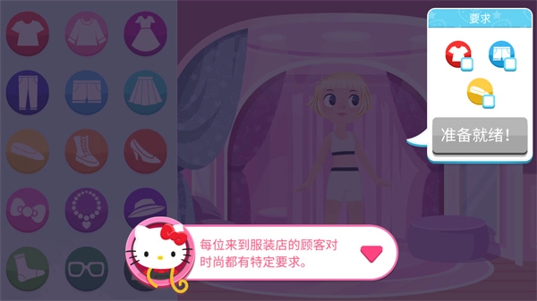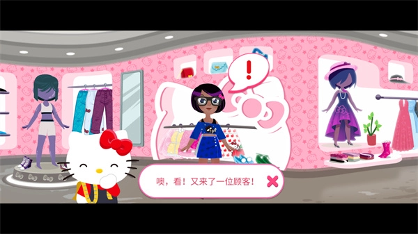 2. 抵达凯蒂猫的服装门店后,点击“!”去接待首位顾客。