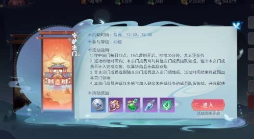 加入宗门,每日12:00、18:00开启