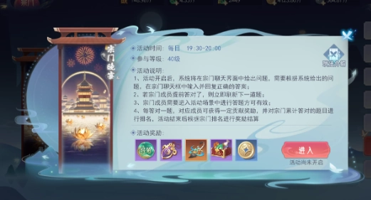加入宗门,每日19:30开启