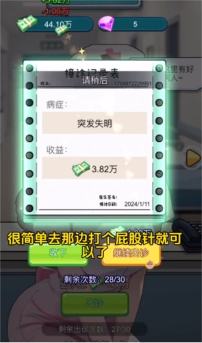 2、所有在游戏里前来医院的患者,都会要求您询问他们的病症。您务必准确诊断,并给出各类治疗方案,确保您的患者能够顺利康复。