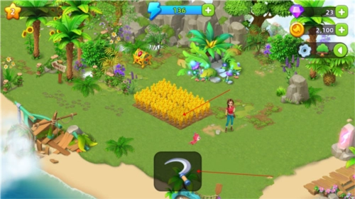 1、轻点镰刀并拖到农作物上方,就能完成收获!