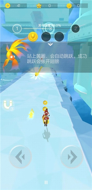 2、空中旅人会有许多的障碍物,有许多的浮空岩石或者是在跑道上有布置一些岩石挡路,这些都是游戏难度增加的套路,游戏过程中还可以收集金币,金币可以用来购买解锁更多的人物。