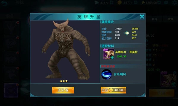 若要将英雄从二星升至三星,需集齐40个英雄碎片,且等级要达到30级。满足这些条件后,各位小伙伴就能将英雄成功升级为三星。当英雄成功升级到三星,小伙伴们可获得一个全新的主动技能,英雄等级也能够提升至40级,还会解锁两个源晶位置哦。