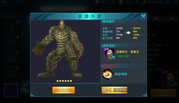 若要将四星英雄升为五星,需集齐160个英雄碎片,且英雄等级要达到50级。符合这些条件的玩家,就能将英雄升级为五星英雄。升级后,五星英雄会解锁一个全新主动技能,同时英雄的最大等级也会提升至55级!
