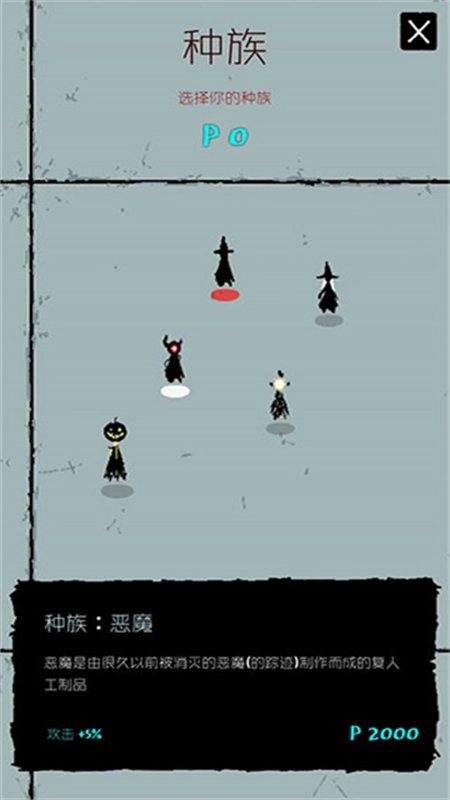 3、有5个种族,为人类、精灵、恶魔、灵体、南瓜灯,每天种族的特性都不相同。
