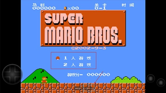 1、进入游戏,首先会展示一段马里奥闯关的一个画面,在画面中选择要闯关的人数,点击start。