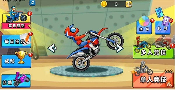 1、开启《登山极限摩托2》游戏,该游戏包含三种模式,分别为多人竞技模式与单人竞技模式 。