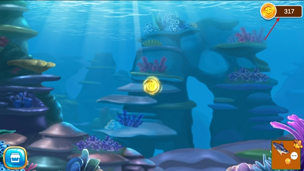 2. 拥有高清的深海游戏世界背景,玩家在此操控卡通小鱼开启游戏。