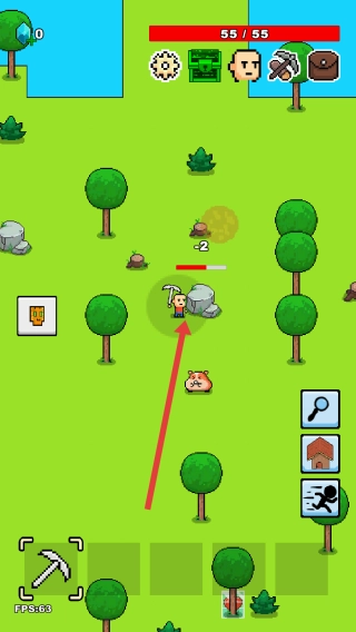 2、操控角色朝着箭头所指的石头进发,在此过程中,可利用工具采集资源(像矿石这类),以此积累生存所需物资。