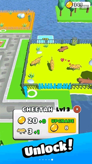 2、打理你的动物园,持续解锁更多区域,扩大动物园规模,从而能够饲养更多动物,吸引大批顾客前来观光。