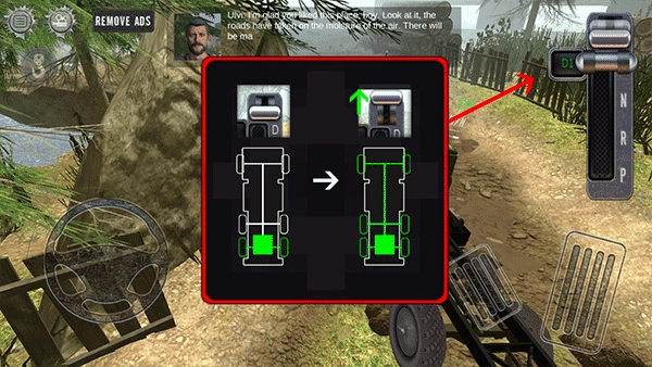 5、要是车轮深深陷入泥潭,可开启档位最上方的功能,使汽车所有轮子都运转起来。