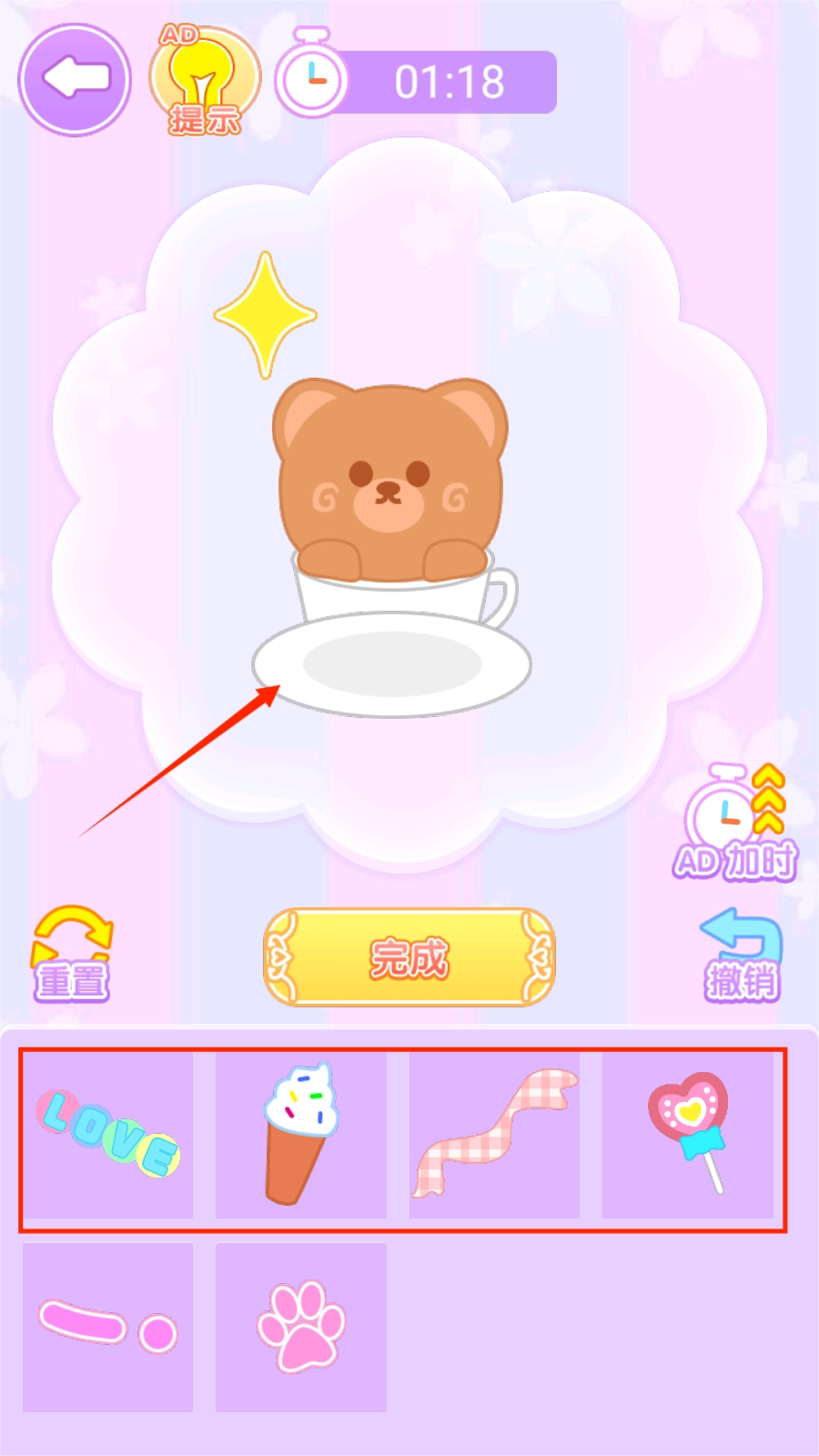 3、请将下方物品装饰到卡膜里面,记得留意时间。