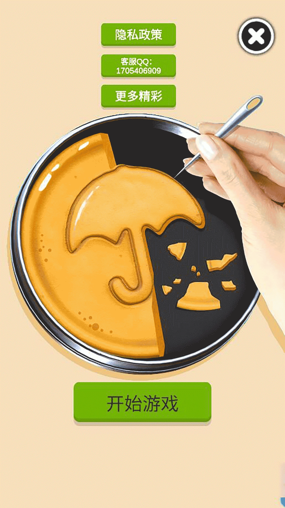 糖饼减压神器是一款超有趣的休闲解压游戏。在游戏里,玩家只需用手中工具,把糖饼中的图案抠出来就行。它有着海量关卡,操作简单,还有轻松惬意的背景音乐,特别适合玩家在闲暇时光用来打发无聊。