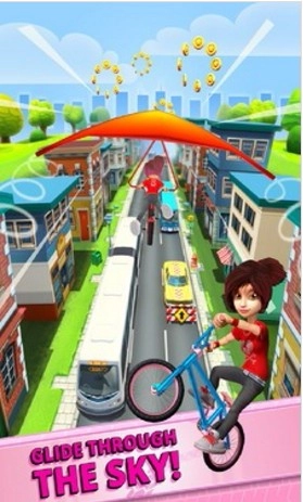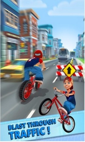 游戏属于跑酷游戏中的一类,但是在本款游戏中你将会看到更多的新意,玩家在游戏中的跑酷不再是以往的双脚跑酷,而是骑着自行车进行跑酷,进入游戏中你会感觉眼前一亮。
