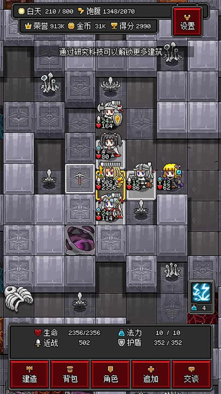 1、前期尽量先去探索获取资源,注意血量和体力,时不时吃一些水果蔬菜借以维持在一个健康值