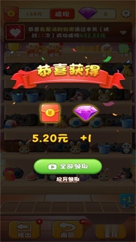 2、当玩家遭遇难度较高的关卡时,能够借助道具进行移出、重排与撤回操作,从而获得完成挑战的机会。