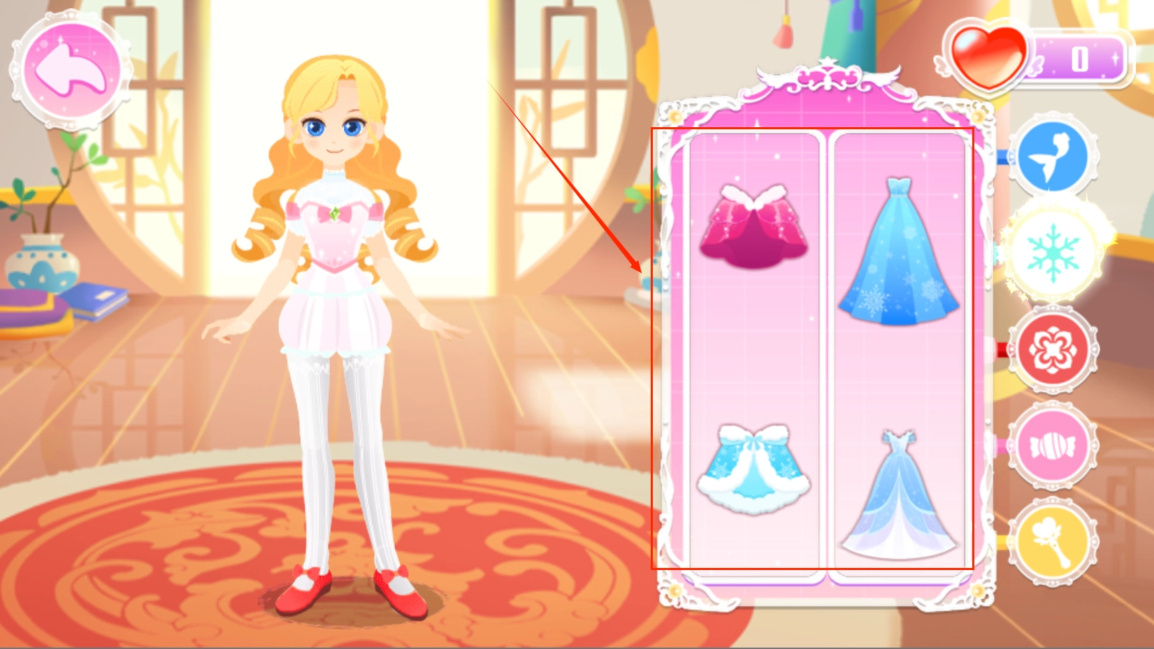 2、在此处,拥有多样玩法。轻点衣柜,就能为公主进行换装;点击梳妆柜,则能够为公主化妆。
