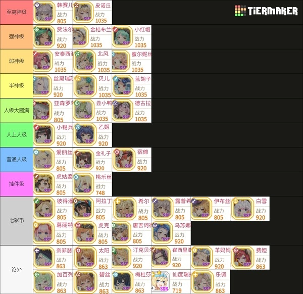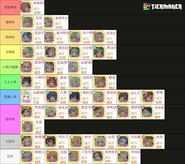 2. 针对头部1035个角色的分级标准,涵盖PVP表现、PVE表现、单体与群体输出能力、伤害与控制能力、功能性、泛用性,以及整体配队的完整性。