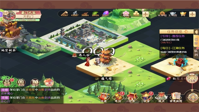 在游戏里,玩家日常既能自主经营个人门派,又能与好友一同派遣弟子展开冒险,进行挑战和完成任务,而且还能够建立情侣、师徒以及联盟等关系。这款游戏基于“配方打造 + 经营模拟”的基础架构,还融入了自创多种武功、研发打造神器、宠物系统、关卡冒险、挖宝等丰富内容。要是你对此感兴趣,那就赶紧来体验一番吧!
