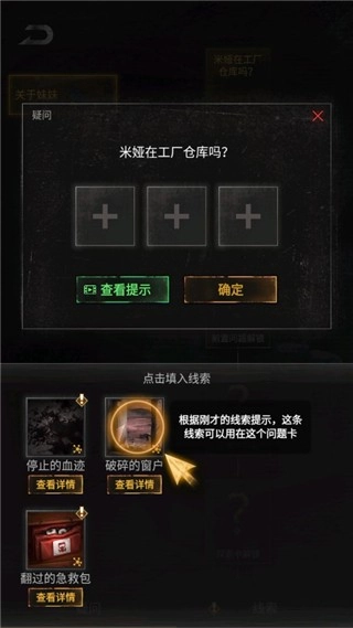 5、接着按照提示,逐个点击疑问与线索提示,认真阅读并仔细推理,从而找到米娅。