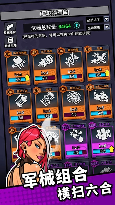 另外,当每种军械升至满星时,便能激活专属特效,这为玩家带来了更为丰富的策略选择与搭配空间。在八向箭头这款游戏里,击杀怪物会随机掉落装备,几十种各异的装备词条效果,赋予了每件装备独一无二的价值与功能。与此同时,游戏还具备挂机放置玩法,使得玩家即便处于离线状态,依旧能够获取游戏中的物品。感兴趣的小伙伴可千万别错过,快来本站体验吧!