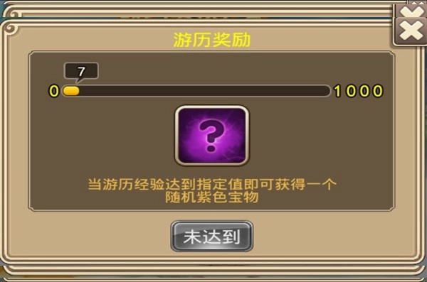 3、当玩家累计点数达到1000点时,便可领取游历奖励,有机会随机获得一件紫色宝物。