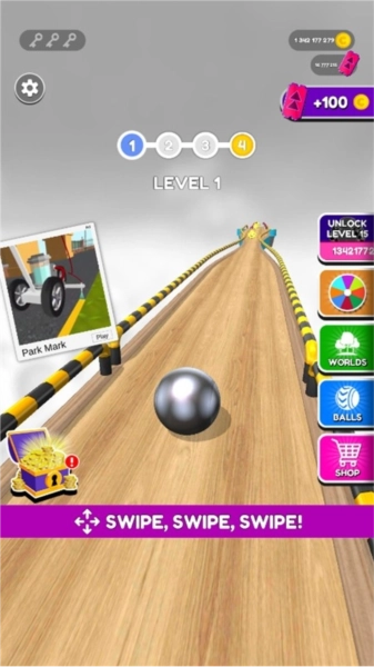 1在游戏里,玩家通过手指左右滑动来改变保龄球的移动方向,向上滑动能够让保龄球加速,向下滑动则可使其减速。