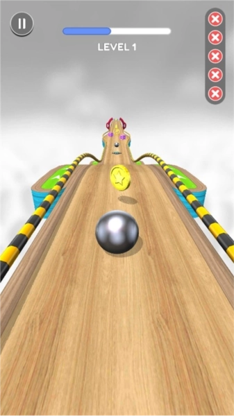 对玩家操作的要求会逐步提升,玩家得在确保速度的基础上,最大程度让保龄球沿着轨道中间前行,防止其掉落至场地之外,否则挑战就会失败。