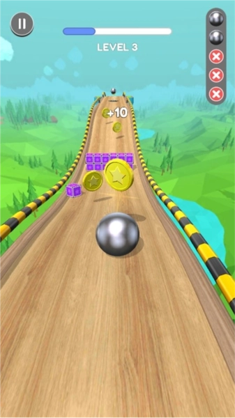 2、玩家仅需点击屏幕就能控制球的运行,若快速向前滑动,球的速度便会提升,而向后滑动时,球则会开始减速。