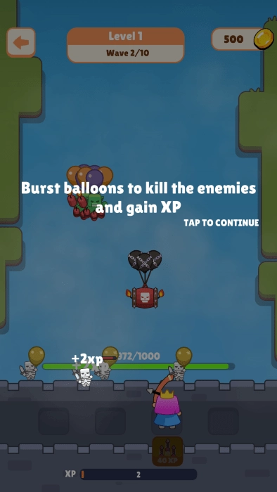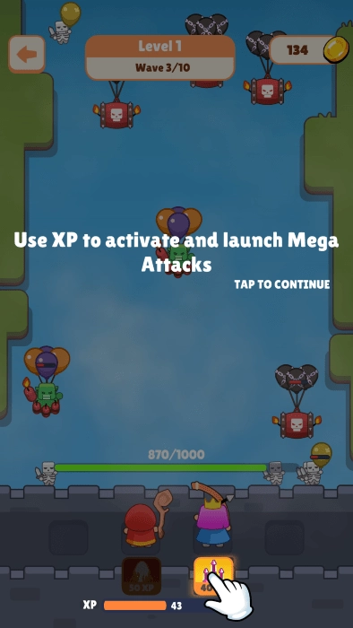击杀怪物后可获得经验值,你的目标是尽可能多地击落气球。