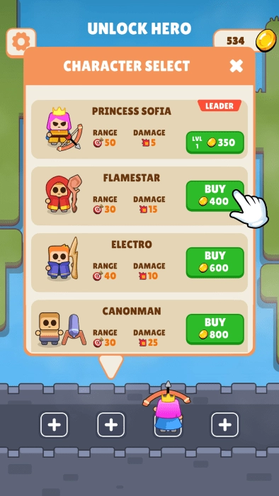 当你击杀怪物所获经验值达到标准后,就能释放英雄技能,进而成功守护你的城堡!