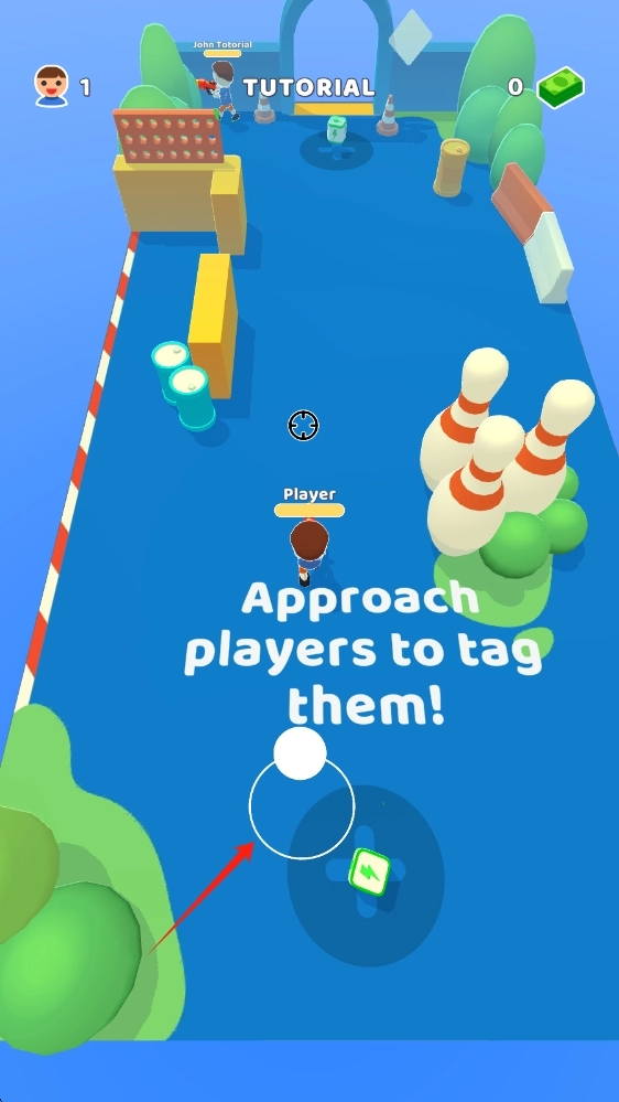 2、进行游戏操作时,要灵活操控角色移动,迅速向玩家靠近,精准完成标记动作,以此积累分数,同时通过拨动轮盘来控制人物移动。