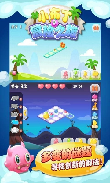 《小布丁冒险之旅》堪称一款洋溢着童趣的休闲益智冒险精品。它以清新可爱的画面风格搭配轻松欢快的背景音乐作为基调,为用户营造出愉悦的闯关感受。其操作简便,容易上手,适合各个年龄段的用户。在丰富多元的关卡里,玩家需要助力小布丁多变谜题,躲避危险,最终成功抵达藏宝箱所在之处,凭借智慧与技巧完成一场既充满挑战又妙趣横生的冒险。
