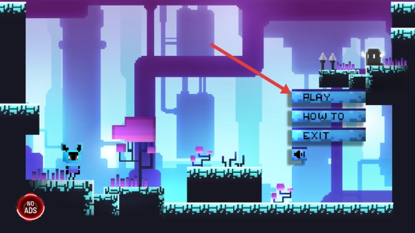 1. 在主界面点击“PLAY”,随后进入关卡选择页面,挑选已解锁的1号关卡。进入关卡后,操控像素角色于横版场景中进行跳跃动作,通过收集绿宝石来推动冒险进程。