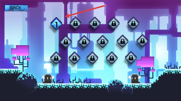 3、当抵达关卡终点处的黑色门状目标时,即完成挑战。随后返回关卡列表,便可解锁后续关卡。按照此流程重复操作,就能探索更多像素场景内容。