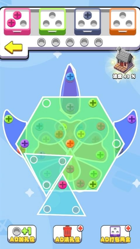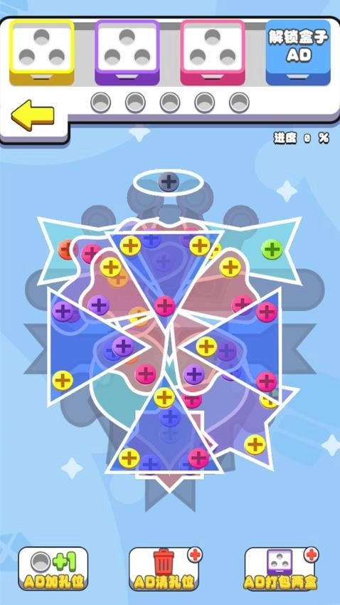 1、孔位渐增:随着关卡的逐步推进,透明板上孔位的数量会慢慢变多,这表明所需收集的螺丝钉数量也随之增加,进而提升了消除的复杂程度与趣味性。