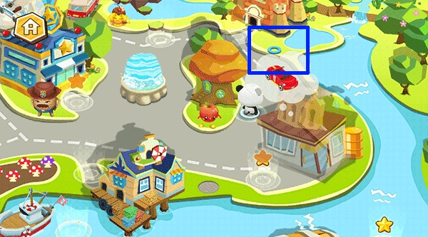 1. 开启游戏,在大地图上点击小熊猫所处的任意一个方向,小熊猫便会朝着该方向移动。就像图示那样,点击某个位置后,蓝色方框内会出现一个圆形小圈。