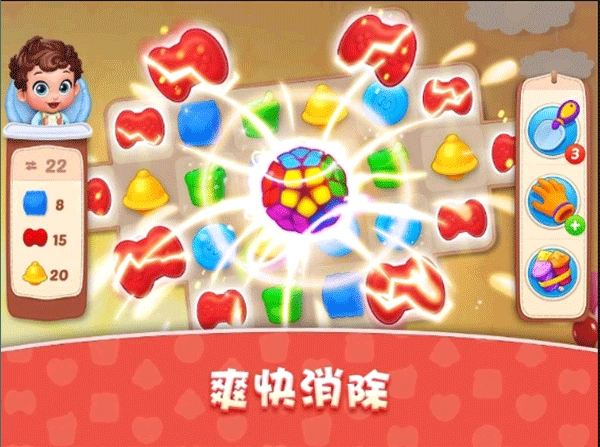 3、采用经典的三消元素,依照提示移动方块,完成消除便能解锁对应颜色的物品。